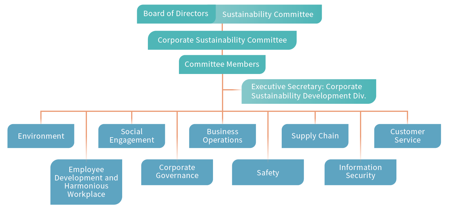 To strengthen the promotion of ESG, our Company has adopted the guidance of “Action oriented, performance targeted, and sustainability focused.” We adjusted the organizational structure of our CSC, dividing the Committee into nine subcommittees. The CSC meeting is held once every quarter. Each subcommittee conducts comprehensive discussions on all aspects of sustainability, and is responsible for the proposal and implementation of corporate sustainability policies, goals, strategies, relevant management guidelines and specific promotion plans.